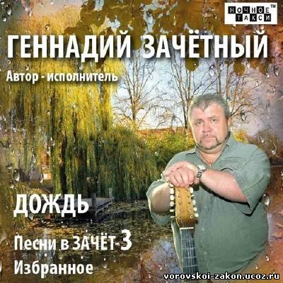 ![]() Категория: Альбом Исполнитель: Геннадий Зачётный Название диска: Дождь. Песни в ЗАЧЁТ-3 Жанр: Шансон Год выпуска: 2013 Количество треков: 14 Время звучания: 01:00:16 Формат | Качество: mp3 | 320 kbps Размер: 169 Mb Скачать Геннадий Зачётный - Дождь. Песни в ЗАЧЁТ-3 (2013) | |